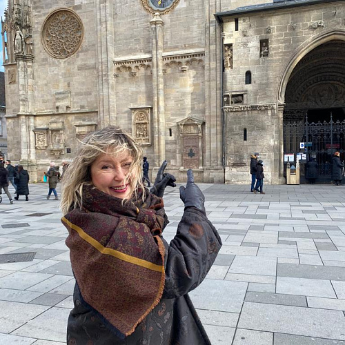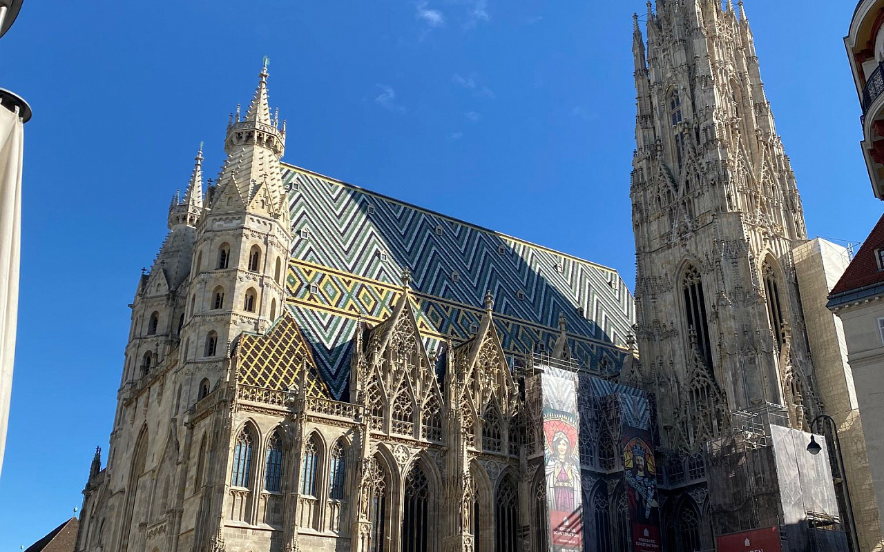 Мы встретимся с вами у Кафедрального собора святого Штефана. Это географический центр города Вены.